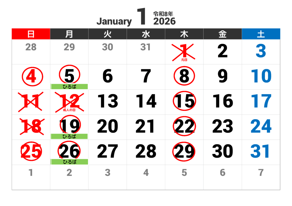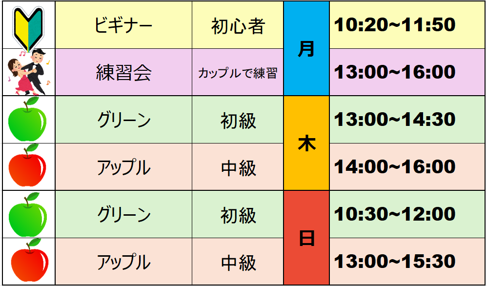 〇は講習会、■はひろば(ダンス練習会)のことです。