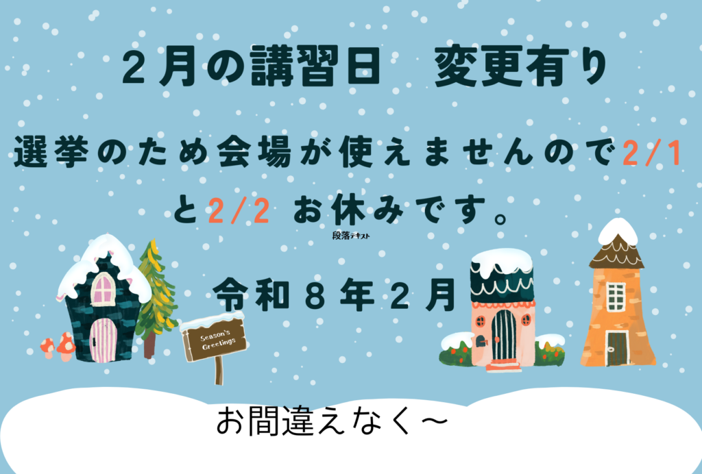 2月講習日変更ー選挙のため2/1,~2/2お休み