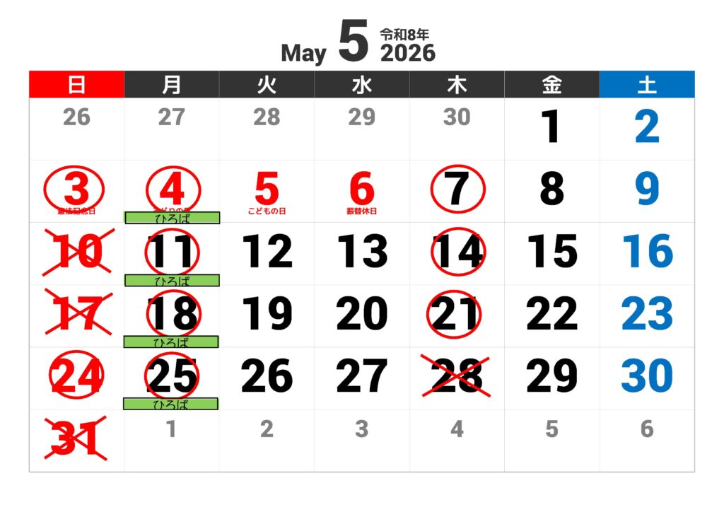 〇は講習会、■はひろば(ダンス練習会)カップルレッスンのことです。