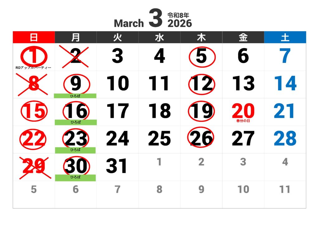 RDアップル パーティー2026/03/01(SUN) 無事終了いたしました。ご参加いただいた皆様、ありがとうございました。